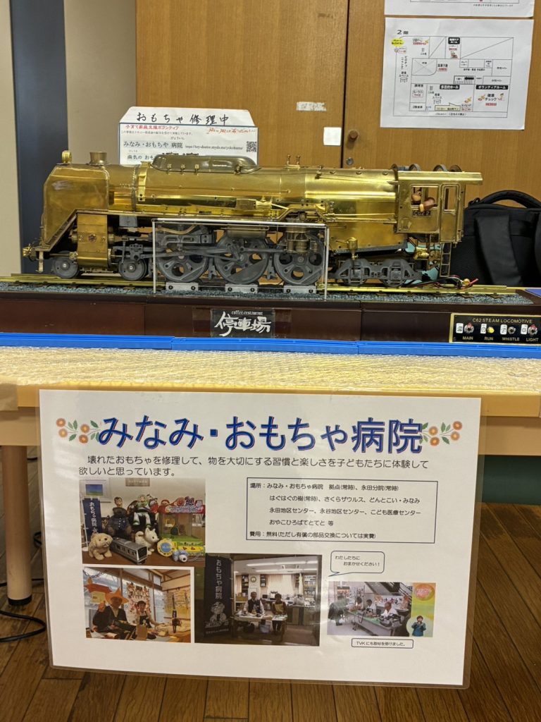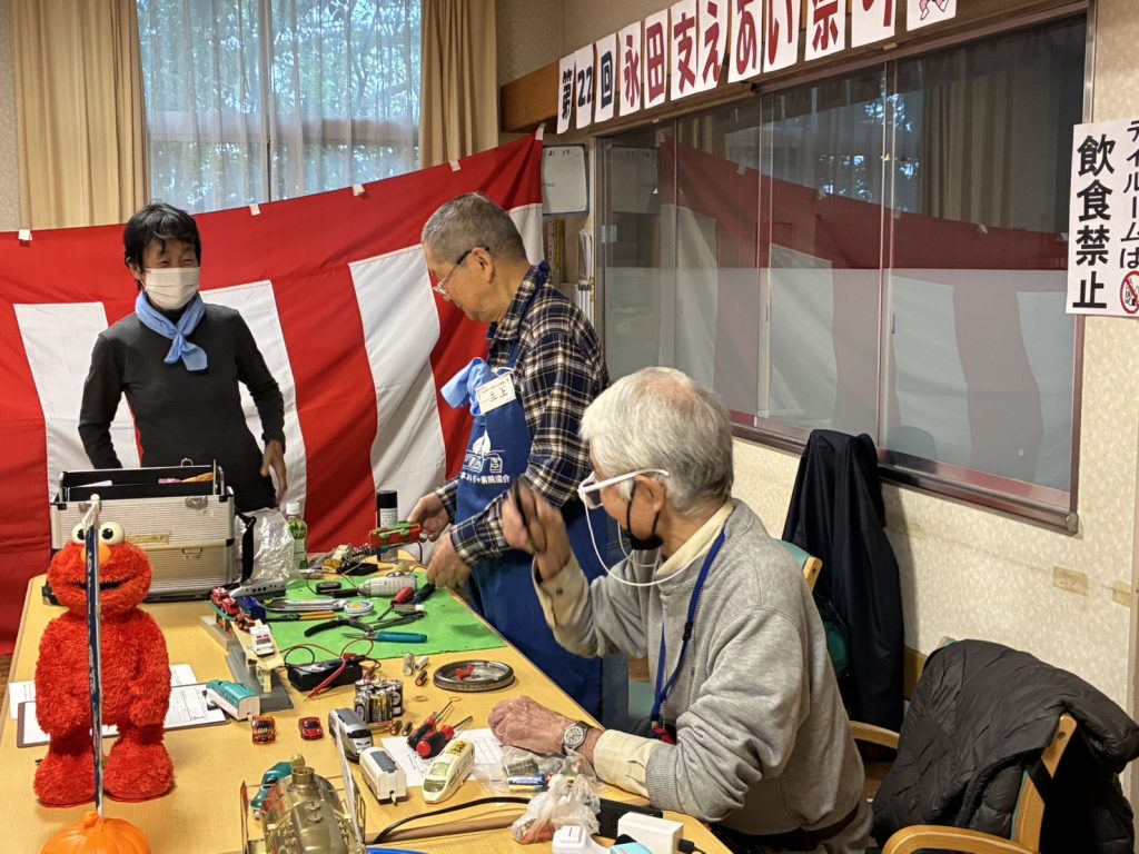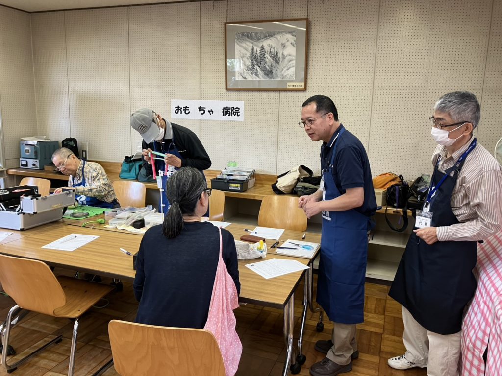 活動風景写真 活動の記録を紹介いたします。 2025.11南区社協にてオシロスコープ勉強会 2025.10永田ケアプラザおもちゃ病院風景 2025.10永田ケアプラザおもちゃ病院展示品 2025.10永谷地区センターおもちゃ病院風景 2024.12はぐはぐの樹クリスマスおもちゃ病院 2024.02インターン研修 2023.12蒔田ひろばクリスマス会 2023.11はぐはぐの樹ハロウィン ボランテイアセンター おもちゃ病院 ランドマークタワーおもちゃ病院(イベント) 子育て雑誌の取材(東京都港区にて) 倉田コミュニテーセンター おもちゃ病院 (戸塚区) 横浜シテイフォーラムでの記事 こわれたおもちゃ捨てないで・・・・・切なる願いです。 ダッドウエー おもちゃ病院 (新横浜) ダッドウエーおもちゃ病院 (新横浜) ベイクオーターおもちゃ病院(横浜駅東口)