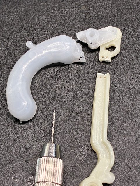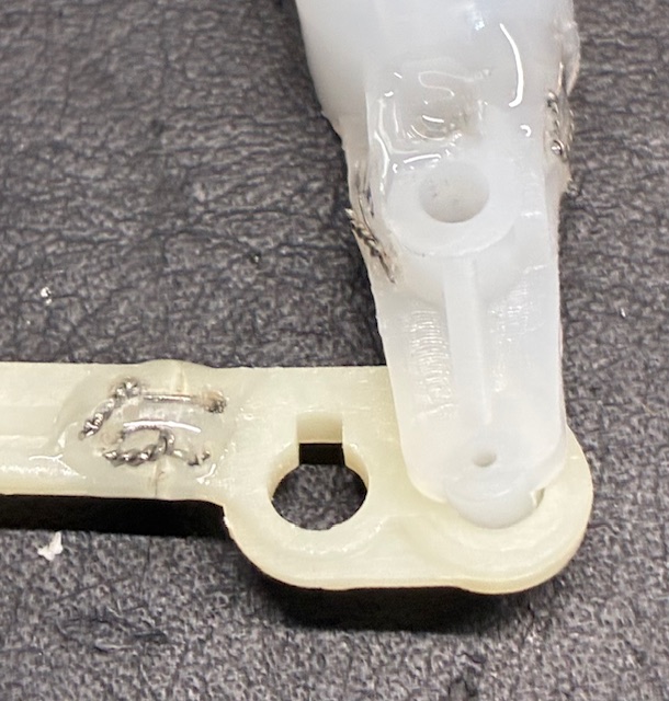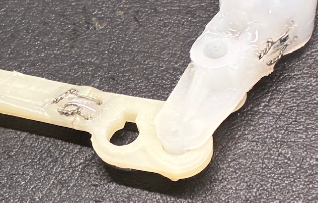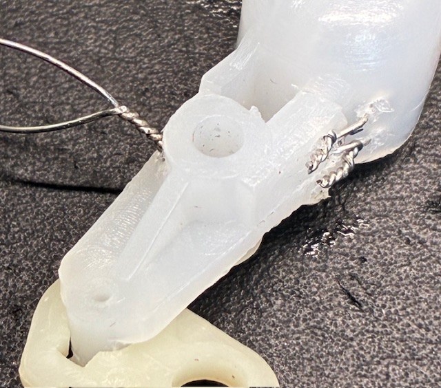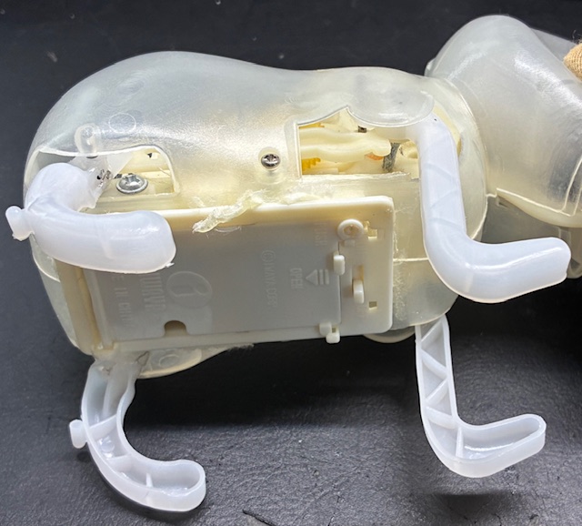 骨折の修理をした脚を組み込みむいぐるみを着せて完成です